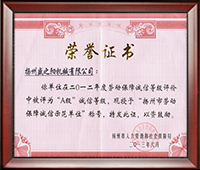 ◇ 榮獲2012年揚(yáng)州市勞動(dòng)保障誠信示范單位